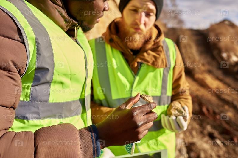 Работники, проверяющие землю на наличие полезных ископаемых