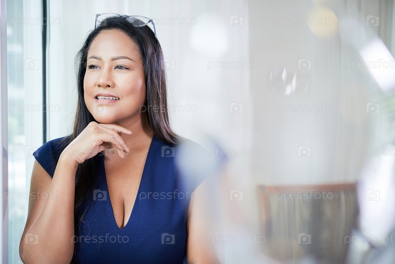 Красивая мыслящая этническая женщина, которая смотрит в сторону
