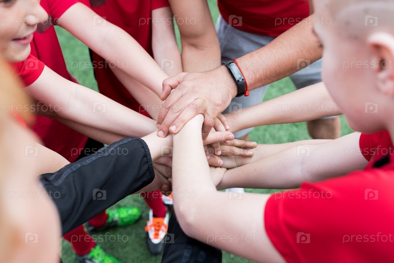 Юношеская команда объединяется в руки