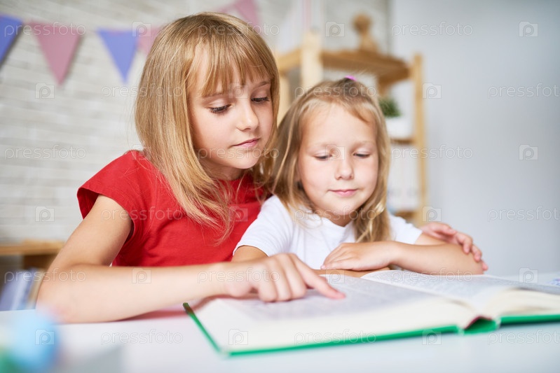 Маленькие сестры сосредоточены на чтении