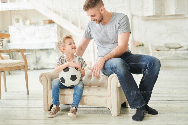 Любящий отец разговаривает со своим милым сыном