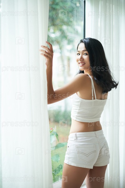 Игральная этническая женщина возле окна