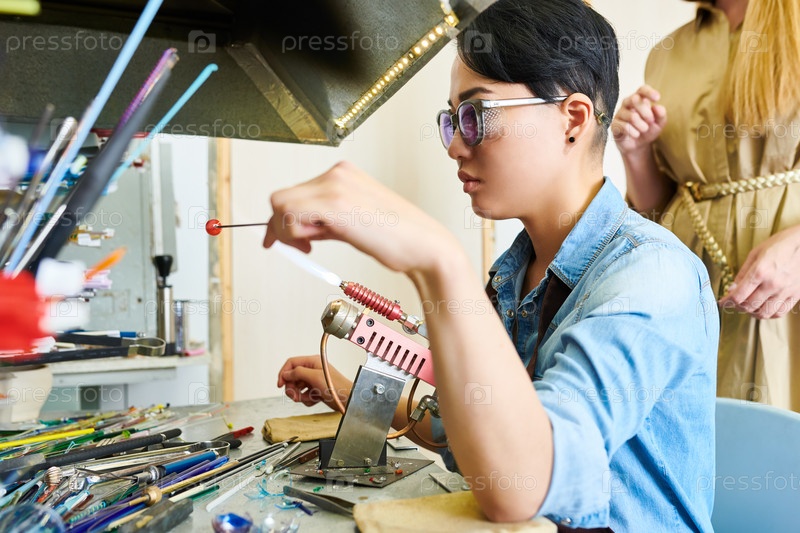 Азиатская женщина-художник в стеклообрабатывающей студии