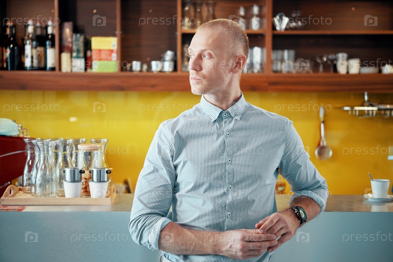 Уверенный менеджер кофейни в помещении
