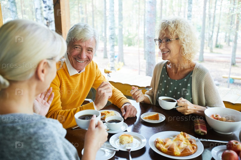 Друзья разговаривают в кафе