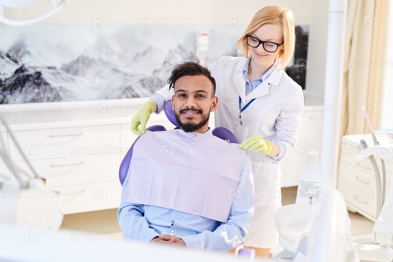 Улыбающийся пациент в стоматологической палате