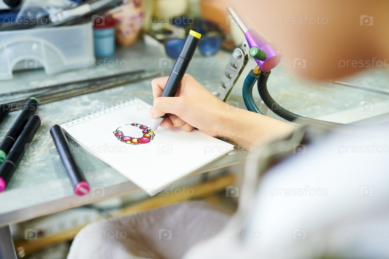 Художник-женщина рисует эскиз
