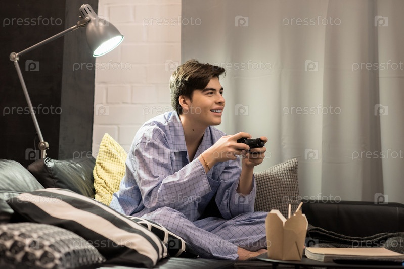 Молодой человек играет в видеоигры