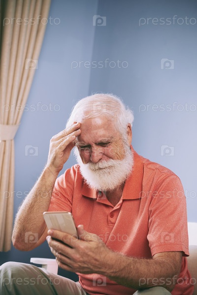 Фрустрированный мужчина читает сообщение