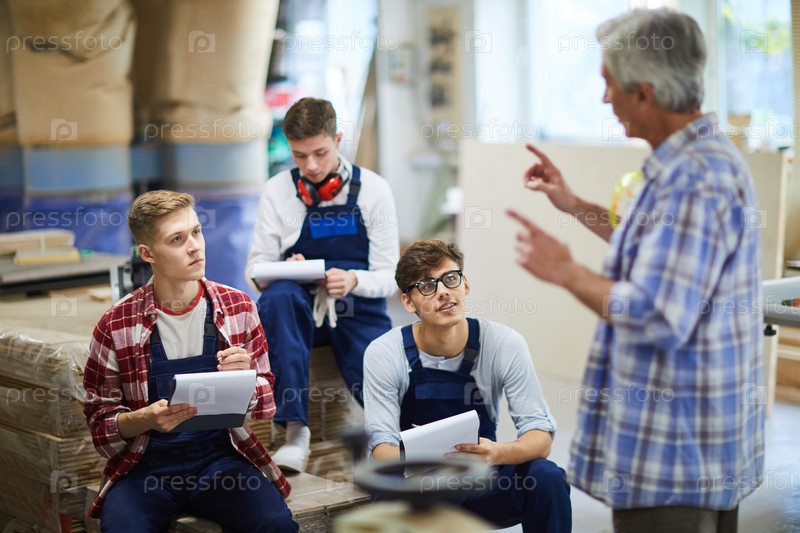Опытный плотник читает лекции для стажеров