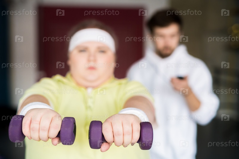 Тренировка жирной женщины с гантельками