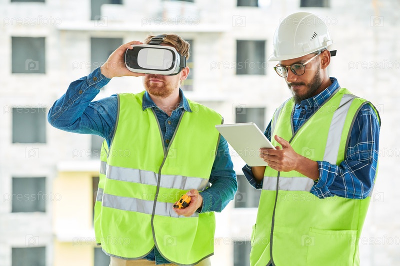 Строительные рабочие, использующие VR на месте
