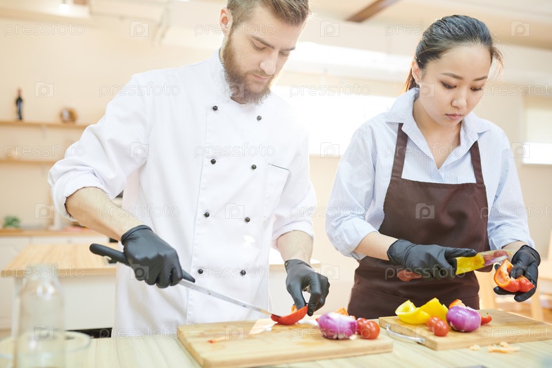 Два современных повара работают на кухне