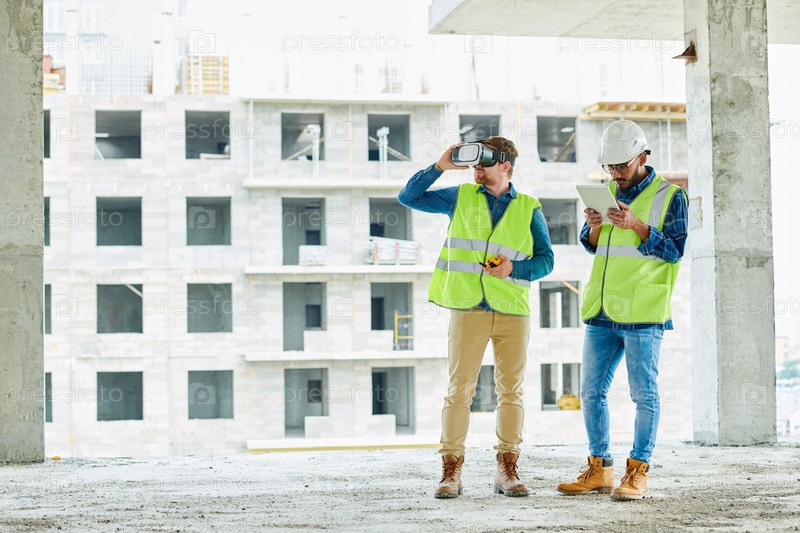 Два работника, использующих VR на месте