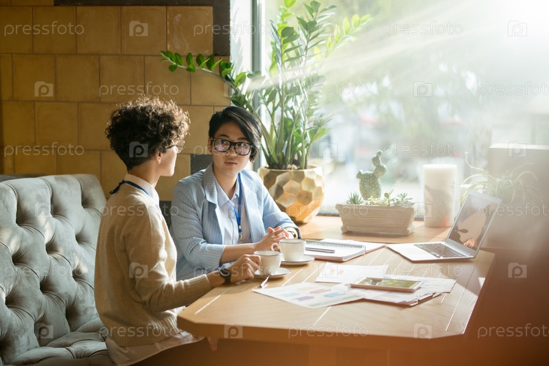 Вдумчивые дамы делятся идеями в кафе