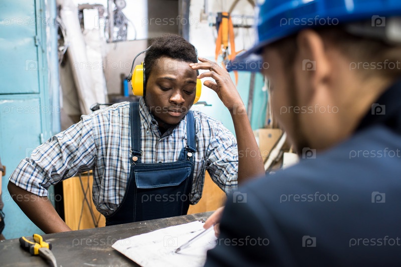 Концентрированный рабочий, слушающий план босса