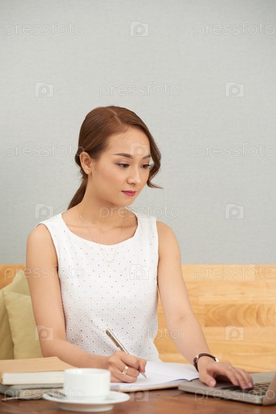 Молодая деловая женщина, занятая работой