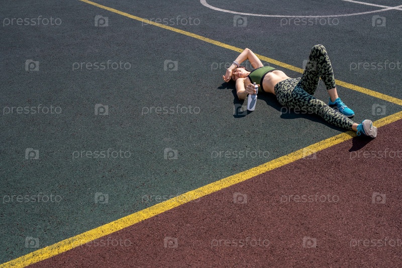 Измученная спортсменка отдыхает на свежем воздухе Фон