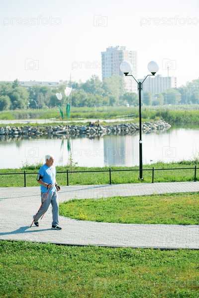 Пенсионер, практикующий нордическую ходьбу