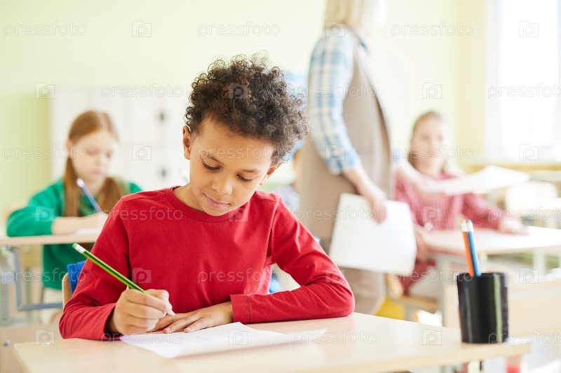 Уверенный школьник отмечает ответы в пустом виде