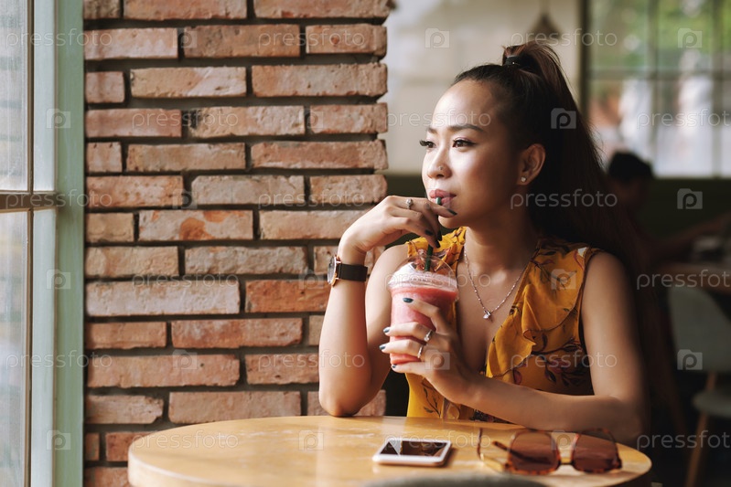 Женщина пьет свежий смузи