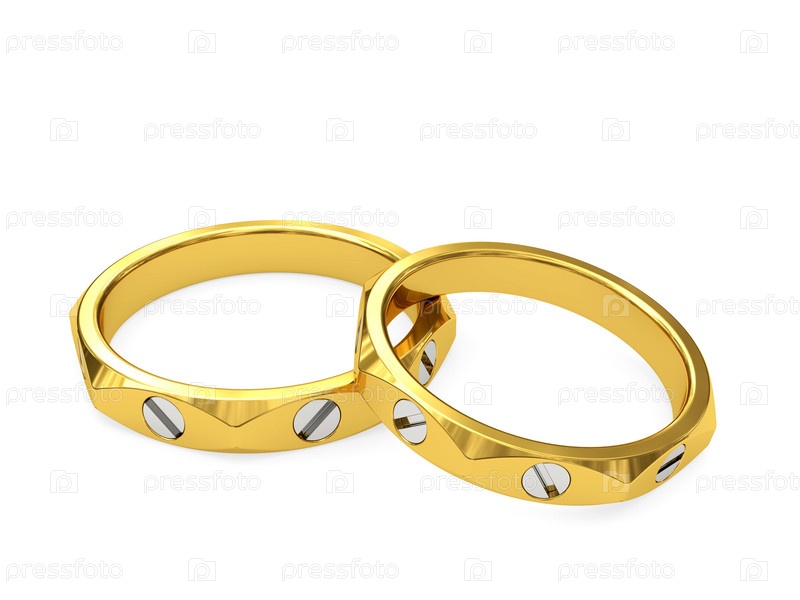 Эксклюзивные обручальные кольца из белого и желтого золота на белом фоне, 3D