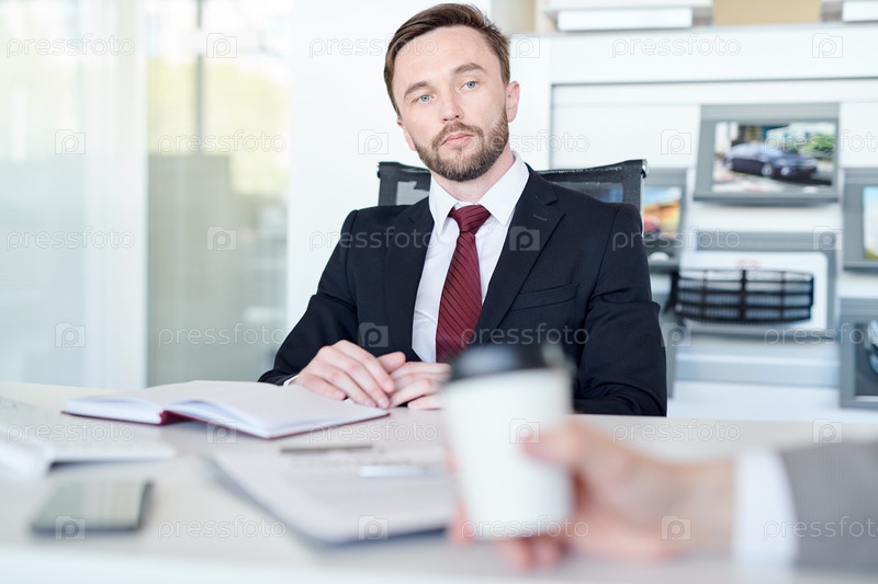 Продавец, работающий с клиентом в автосалоне