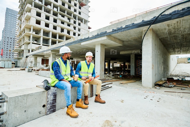 Позитивные строители отдыхают на стройплощадке