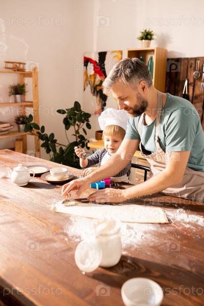 Отец и сын режут формы из теста