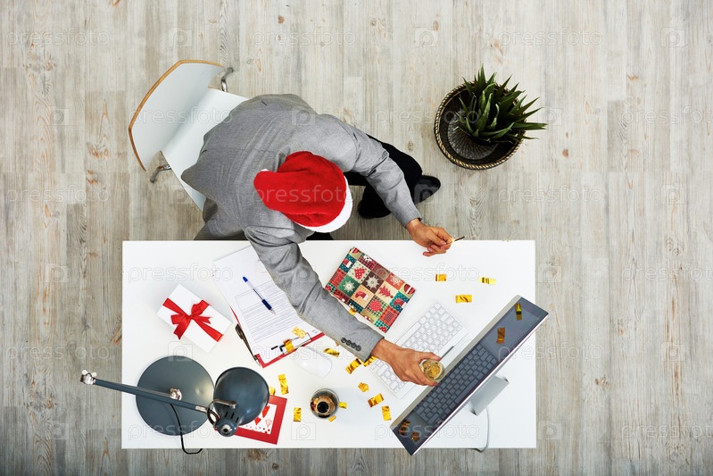 Тяжело работающий менеджер празднует Рождество