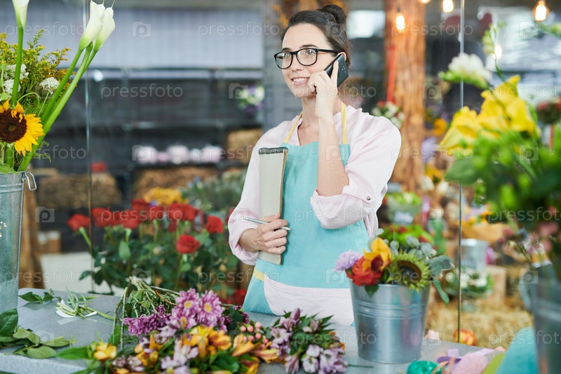 Цветочник, говорящий по телефону Modern Florist Speaking by Phone