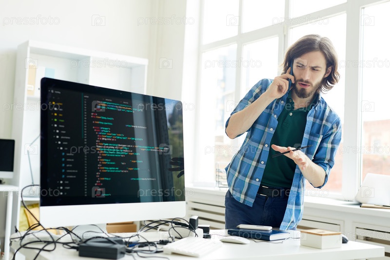 Запутавшийся ИТ-специалист задает вопрос клиенту по телефону
