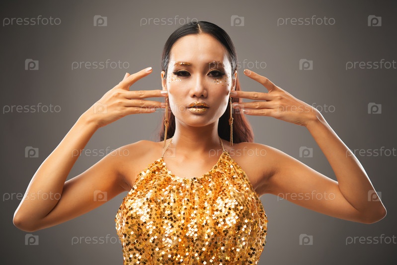 Красивая этническая женщина с блестящим макияжем