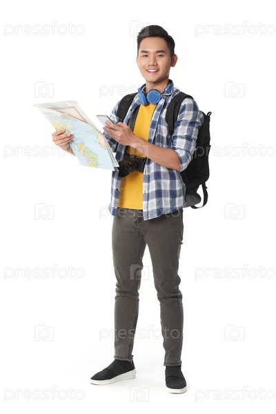 Портрет красивого туриста с картой