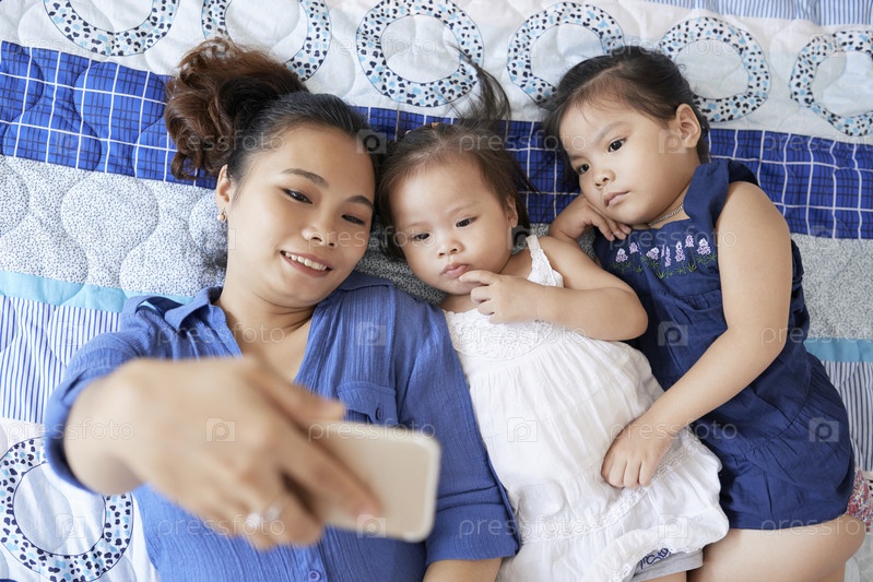 Мать и дети фотографируются вместе