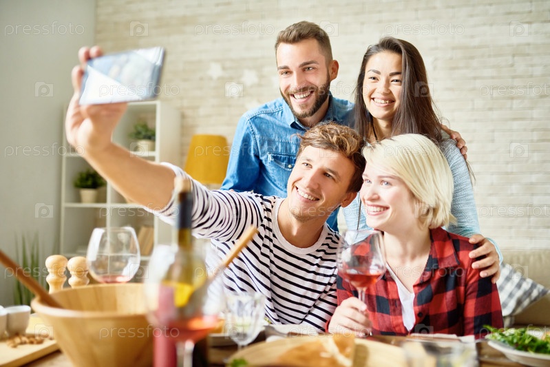 Счастливые пары позируют для селфи