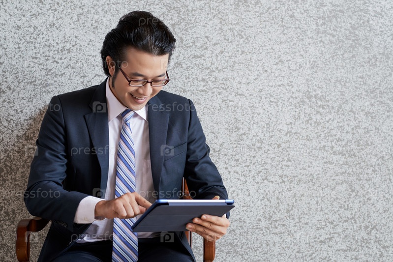Улыбающийся этнический бизнесмен с планшетом