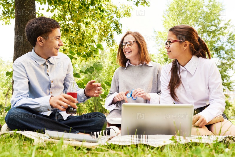 Группа детей, наслаждающихся пикником на свежем воздухе