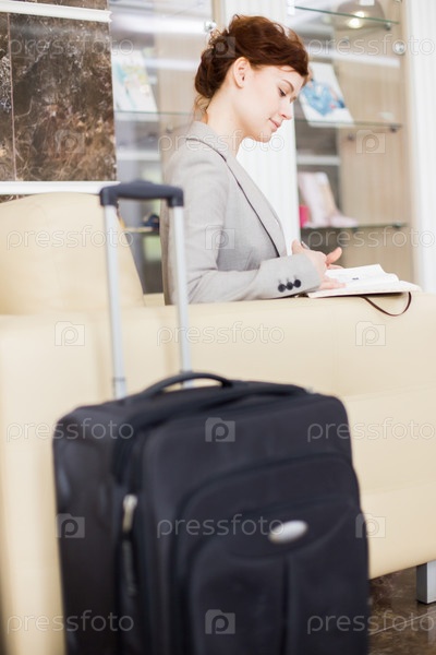 Элегантная деловая женщина ждет в отеле