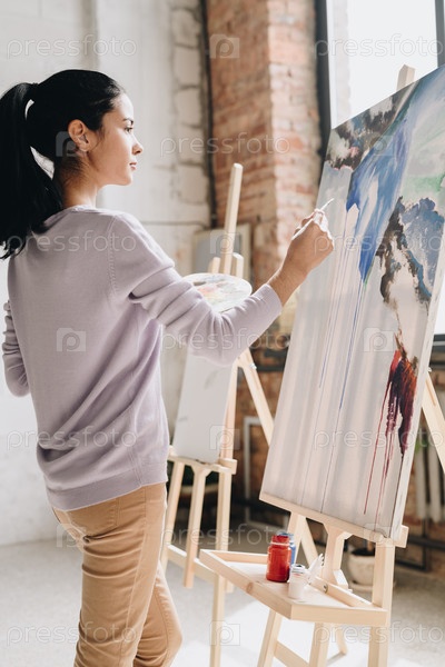 Красивая женщина рисует в студии