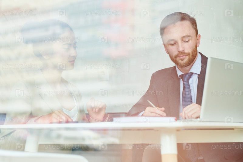 Красивый бизнесмен за стеклянной стеной