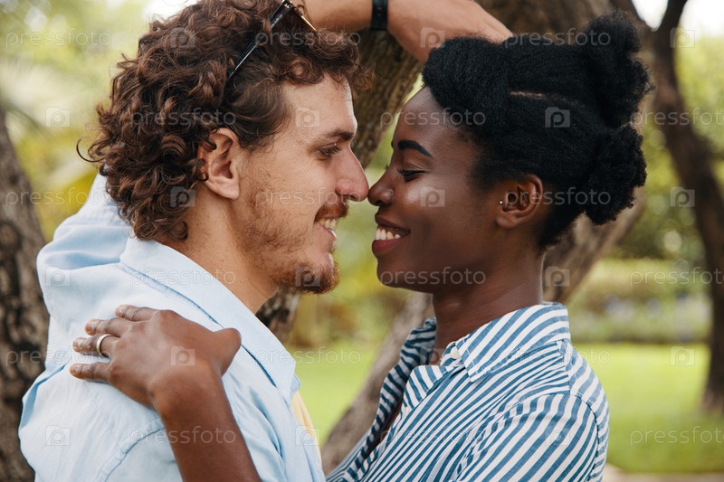Романтическая разнообразная пара, которая собирается поцеловать
