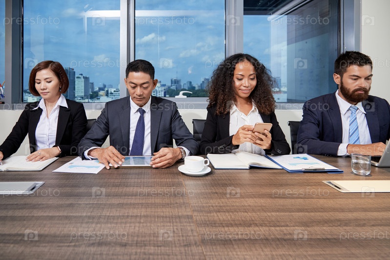Различные коллеги за столом в офисе