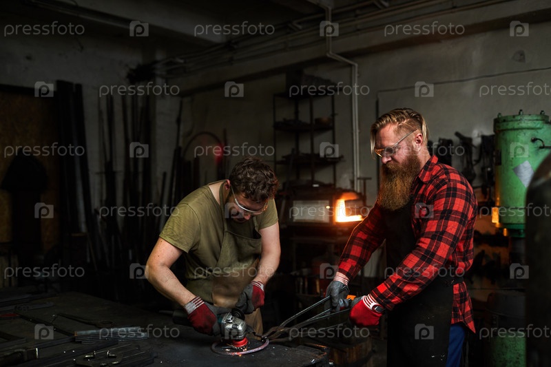 Загруженные жестокие сотрудники, работающие с металлом
