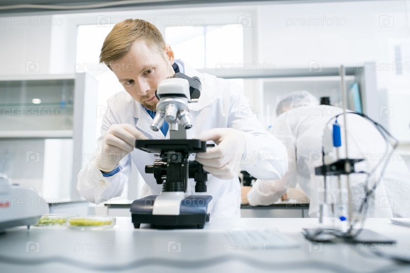 Использование микроскопа в лаборатории ученый