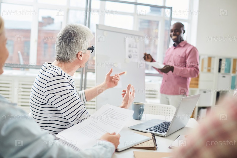 Менеджеры обсуждают проект на брифинге