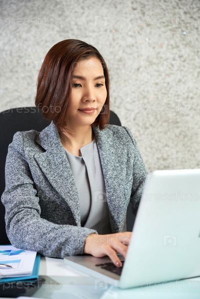Деловая женщина печатает на ноутбуке