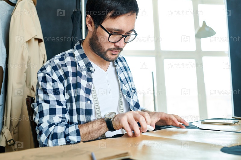 Молодой дизайнер, работающий с швейными узорами