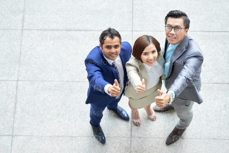 Бизнес-команда показывает большие пальцы вверх