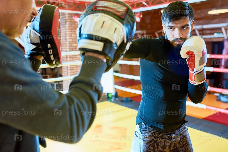 Профессиональный тренер с боксером на ринге